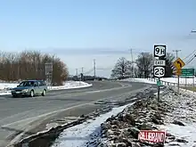New York State Route 9H (NY 9H) is a state highway located within Columbia County, New York, in the United States. It runs in a north–south direction for 18.70 miles (30.09 km) from an intersection with U.S. Route 9 (US 9), NY 82, and NY 23 in Bell Pond to a junction with US 9 in Valatie. Most of the route is an easterly alternate route of US 9; however, the two routes cross near Valatie, and the northernmost mile of NY 9H runs west of US 9. NY 9H was assigned in the early 1930s to the part of its modern alignment south of Valatie. It was extended to its current length around the end of the 1930s.