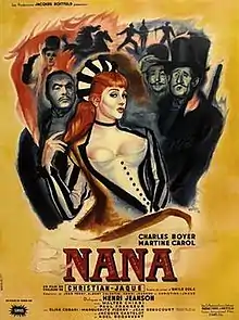 Nana is a French-Italian film by Christian-Jaque starring Martine Carol and Charles Boyer. An adaptation of the 1880 novel Nana by Émile Zola, it tells the story of two French aristocrats who are fatally ruined by their obsession for Nana, a mediocre actress and prostitute. Using the ancient theme of a worthless woman beguiling powerful men, the film portrays the moral corruption of the nominally Catholic court and nobility under the Second Empire.