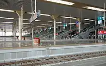 Nanjingnan (Nanjing South) railway station (Chinese: 南京南站; pinyin: Nánjīngnán Zhàn) is a high-speed railway station in Nanjing, the capital of Jiangsu province, serving the Beijing–Shanghai (Jinghu) high-speed railway, Shanghai–Nanjing (Huning) intercity railway, Nanjing–Hangzhou (Ninghang) high-speed railway, Shanghai–Wuhan–Chengdu (Huhanrong) high-speed railway and the South Jiangsu Riverside high-speed railway. The new Nanjing South railway station is located a few kilometers south of downtown Nanjing in Yuhuatai District, and has a connection with the Nanjing Metro, served by Lines 1, 3, S1 and S3. Construction on the station began on 10 January 2008,[1] and the station opened on 28 June 2011,[2] two days before the opening of the Beijing–Shanghai high-speed railway.