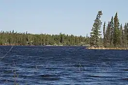 The lakes sits in Churchill River Upland portion of the Midwestern Canadian Shield forests and is surrounded by mixed forest with stands of black spruce, white spruce, jack pine, and trembling aspen. The shoreline is poorly drained areas of muskeg.[2]