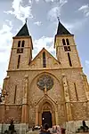 The Sacred Heart Cathedral (Croatian: Katedrala Srca Isusova) in Sarajevo, commonly referred as the Sarajevo Cathedral is the largest cathedral in Bosnia and Herzegovina.[14] It is the seat of the Archbishop of Vrhbosna, currently Cardinal Vinko Puljić, and center of Catholic worship in the city. The Cathedral is located in the city's Old Town district. It was designed by Josip Vancaš as a triple-aisled church in the eclectic manner, with neo-Gothic elements predominating. The tomb of Josip Stadler, the first Archbishop of Vrhbosna, is located in the Cathedral. |