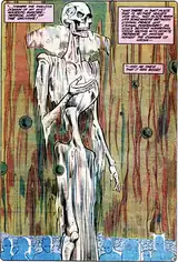 According to Black Lantern Jean Loring, Nekron was formed out of the nothingness in existence prior to the creation of the universe as a defense mechanism to the White Light, the Guardian of Darkness.[11][12] Given shape in the form of life's idea of death, Nekron marches with his undead army, claiming the hunger plaguing him has not abated.[12] Nekron is not a living being but just exists as an avatar of darkness from the beginning of the universe. This makes Nekron immune to the Spectre's divine wrath, as he has no soul to judge and he is not unlike a natural disaster.[13]