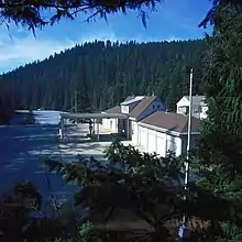 The United States still occupies the original permanent border station at this crossing, built in the mid-1930s; it was recorded on the U.S. National Register of Historic Places in 1997.[6] Canada replaced its depression-era border station in 1951, then replaced it again in 2000. Today the crossing is often used by tourists exploring the International Selkirk Loop.[7] U.S. Customs and Border Protection announced in 2018 that the Metaline Falls station would close at 8 p.m. instead of midnight.[8] This was cut back further to 4 p.m. in 2020 due to the COVID-19 pandemic and remained in place after the border reopened.[9][10]