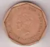 The 50-cent coin is diamond-shaped. It is the only modern Antillean coin in this form, but an earlier version of the five-cent piece was also in this shape. |