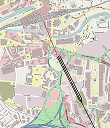 Leeds New Lane was a proposed new railway station to accommodate High Speed Two rail services in West Yorkshire, England. It was planned to be constructed on a viaduct on New Lane south of Leeds city centre, the River Aire and Leeds City station[1] to which it would be connected by an elevated walkway.[2] The site is occupied by Central Park, a small low-rise office park built in the 1990s and other small office buildings.