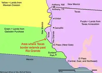 The boundary line between New Mexico and Texas is the middle of the channel of the Rio Grande as it was located in 1850. | |