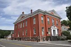The historic district is roughly bounded on the east by East Street and South Main Street, the south by Mill Street, the west by South Main Street and Railroad Street (excluding many of the buildings on the latter roadway), and on the north by Bennitt and Elm Streets. Prominent features include one of the state's longest town greens, which is lined mainly by civic and residential buildings, and the cluster of commercial brick and stone buildings along Bank and Main Streets near the southern end of the green. Residential areas with fine 19th-century Victorian houses fringe the district, on South Main, East, and Bennitt Streets. Separately listed buildings on the National Register that are in the district include the United Bank Building and the E. A. Wildman & Co. Tobacco Warehouse; the district excludes the separately listed railroad station.[2]