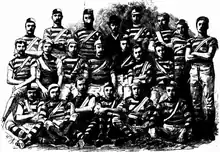 By 1880, Waratah and other Sydney clubs began initiating changes to rugby rules.[16] Rugby interests, however, repeatedly rejected suggestions to switch codes or even play intercolonial matches under alternating rules against Victoria. In response, the proponents of the Australian game formed the New South Wales Football Association (NSWFA) in 1880. In 1881, the first Australian rules game between NSW and Victoria was played in Sydney.[17] The NSWFA only had a few clubs, including Waratah which switched codes in 1882. Until 1889, competition wasn't present when clubs competed for the Flanagan Cup. Despite this, the Sydney Rugby Football Union, seeing the new competition as a threat, enforced a strict ban on every one of its member clubs playing Victorian rules.[18]