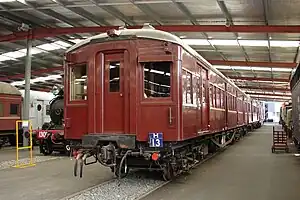 All were delivered between January 1921 and January 1922 numbered 2112 to 2211. One further first class carriage was delivered as 2212 by the Eveleigh Carriage Workshops in January 1923.[3] All initially entered service as locomotive hauled stock with eight seats fitted in what would later become the driver's cabin.[1][2][4]