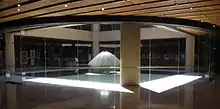 Behind the entrance building is the Jubilee Room, used for committee meetings and public functions. In this area, which is open to the public, there is also the Fountain Court, an exhibition venue containing a fountain by Robert Woodward. Beneath the Fountain Court is a 166-seat theatrette and above it a roof garden sometimes used for functions. Together with a small post office, these 1970s features form a "square doughnut"-shaped building linking the streetfront buildings with a 12-storey block at the rear. This block, with views over the Domain contains offices for members and other staff and meetings rooms, as well as dining facilities, a fitness area and car parking and service areas. The building has a power co-generation unit that serves Sydney Hospital and the State Library of New South Wales as well as Parliament House.[5]