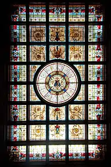 The main entrances are contained in a two-storey building with a colonnaded front verandah. On the ground floor, there are two entrance halls. Between these halls is the Parkes Room, which is used for small committee meetings and events. The upstairs rooms are used by Hansard.[2] To the north of this building is the chamber of the Legislative Assembly, the lower house. The colour scheme of the chamber is green, following the colours in the House of Commons of the United Kingdom. At one end of the room is the speaker's chair, and in front of this is a table holding the mace. Government members sit in the two rows of seating to the speaker's right, and opposition members to the left. There are galleries for the press behind the speaker, Hansard to the speaker's left, guests of the speaker opposite the speaker and the public above the speaker's gallery and to the speaker's right.[3]