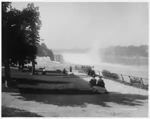 Prospect Point at the Niagara Reservation, c.1900. The reservation, known today as Niagara Falls State Park, was the first park opened by New York State.