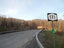 In the late 1960s, a limited-access highway was constructed between Utica and Ilion alongside NY 5S.[10][11] The new highway became part of a rerouted NY 5S in the early 1970s.[12][13] As a result, NY 171, which does not interchange with the highway, no longer connects to any other signed state routes.[3] NY 171 is the only signed state highway in New York that is completely isolated from the remainder of the state highway system.[1]