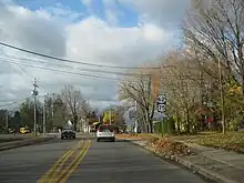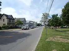 All of what is now NY 75 was state-maintained by 1926.[8] In the 1930 renumbering of state highways in New York, the portion of modern NY 75 north of the village of Hamburg was designated as part of NY 62, a highway extending from Great Valley north to Buffalo.[3] The section between Collins Center and Eden gained a designation in 1930 when it became part of NY 18A, an alternate route of then-NY 18 between Collins and Eden.[2][4] NY 18A overlapped with NY 39 between the hamlets of Collins (where NY 18A began at NY 18) and Collins Center,[9] from where the route followed Sisson Highway north to rejoin NY 18 in Eden.[5] US 62 was extended into New York c. 1932. As a result, the portion of NY 62 south of the hamlet of Athol Springs was renumbered to NY 75 to eliminate numerical duplication with the new U.S. Highway. The remainder of old NY 62 became part of an extended NY 5.[4][5]