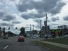 Running north through Edgebrook Estates, NY 277 passes a long strip mall on the northbound side, soon crossing under tracks owned by Norfolk Southern, crossing into the Bellvue section of Cheektowaga. After a two-quadrant interchange with NY 130 (Broadway), the route crosses under tracks owned by CSX Transportation and used by Amtrak, just west of the Buffalo-Depew Amtrak station. NY 277 continues north through Cheektowaga, crossing a junction with Walden Avenue (NY 952Q), an unsigned reference route. The route then runs east of the entrances to the Walden Galleria and crosses through the commercial Maryvale section of Cheektowaga.[3]