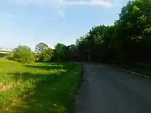 Niagara Falls International Airport, located on Niagara Falls Boulevard near the proposed east end of the Porter Road extension, was officially opened on June 13, 1929, as part of a citywide festival.[7] Two months later, Niagara Falls City Manager W.D. Robbins indicated that the state had planned to construct the rest of the Porter Road extension in 1930, providing the city with another route to the new airport.[6] By the following October, most of the extension was completed save for the bridge traversing Cayuga Creek.[8] The overpass over the creek was finished by 1932, and Porter Road was designated as NY 18D c. 1932.[9][10] While state maintenance of Porter Road was confined to the part outside of Niagara Falls, NY 18D continued westward through the city to the Whirlpool Rapids Bridge by way of several city-maintained streets.[11] The designation of the route was changed to NY 182 when NY 18 was truncated to US 104 (now NY 104) in Lewiston on January 1, 1962.[2]
