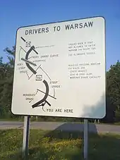 Sign on US 20A warning motorists of steep grades and sharp turns near Warsaw