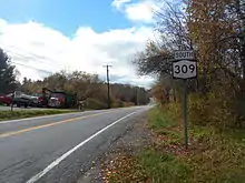 New York State Route 309 (NY 309) is a 6.56-mile-long (10.56 km) state highway located entirely in Fulton County, New York, in the United States. The southern terminus of the route is at an intersection with NY 29A in Gloversville. The northern terminus of the route is at a junction with Lily Lake Road in the hamlet of Bleecker, where the highway continues north and west as County Route 112 (CR 112) to London Bridge Road (CR 111, near NY 10 and NY 29A) at West Caroga Lake in the town of Caroga. Part of NY 309 and all of CR 112 is located within Adirondack Park. NY 309 was assigned to its current alignment as part of the 1930 renumbering of state highways in New York.