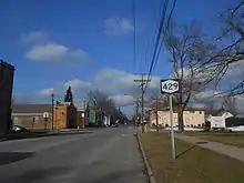 New York State Route 429 (NY 429) is a north–south state highway located entirely within Niagara County, New York, in the United States. It extends for 12.16 miles (19.57 km) from an intersection with NY 265 and NY 384 in North Tonawanda to a junction with NY 104 (Ridge Road) on the border between the towns of Cambria and Lewiston. Although it is relatively minor in length, the route is regionally important nonetheless as it connects North Tonawanda to some of the county's interior regions. About midway between North Tonawanda and Ridge Road, NY 429 serves the hamlet of Sanborn, where it briefly overlaps with NY 31. At Pekin, a community situated between Sanborn and NY 104, NY 429 descends the Niagara Escarpment.