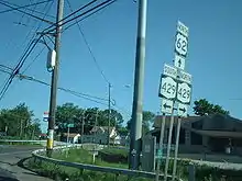 In the 1930 renumbering of state highways in New York, the Niagara Falls–Sanborn leg of NY 31A became part of a realigned NY 3, which had followed modern NY 425 from North Tonawanda to Saunders Settlement Road prior to the renumbering.[14][15] Despite this fact, NY 31A continued to extend west to Niagara Falls, creating an overlap with the cross-state NY 3.[16] The overlap remained in place until c. 1935 when US 104 was assigned across Upstate New York. West of Rochester, it replaced NY 31, which was shifted southward to follow all of NY 3 from Niagara Falls to Rochester. NY 31A, meanwhile, was eliminated and partially replaced with NY 429, a route created c. 1932 that continued south from Sanborn to North Tonawanda via Ward Road and Oliver and Wheatfield Streets.[2][3][4][17] NY 429 has not been substantially altered since that time.[18]
