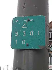 A reference marker depicting former NY 323 at Lake Street in Angola