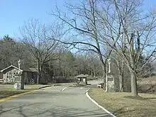 From 1948 to 1952, NY 329 was part of the Watkins Glen Grand Prix Course, a road course around Watkins Glen State Park that also included NY 409, Franklin Street (NY 14 and NY 414), and Whites Hollow Road. The first race on the road took place on October 2, 1948; the last was on September 20, 1952. During the 1952 race, a car briefly entered the crowd that had lined up along the course, killing one person and injuring several others. The race was stopped immediately and moved to another, more rural location in 1953.[15] The entirety of the old Grand Prix road course was added to the National Register of Historic Places on December 4, 2002.[16]
