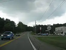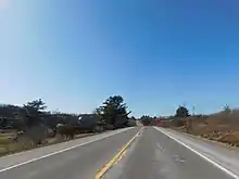 In January 1967, NY 38B was added to the state project list for the 196768 fiscal year. By this point, the county-maintained alignment was cracking and sinking in several locations, as well as some erosion.[8] In April, it was announced that design plans would be complete by August 1 for the reconstruction.[9] In November, the Governor of New York Nelson Rockefeller announced that bids would open on December 14 for the reconstruction project, costing $2.985 million (1967 USD).[10] In January 1968, the state announced that the contract went to the Triple Cities Construction Company of Binghamton. The $2,311,510 job would involve rebuilding the section in Tioga County with new 24 feet (7.3 m) wide roadway with 9 feet (2.7 m) shoulders. This would replace the old alignment, which only had 18 feet (5.5 m) of roadway. The project would also have special 12 feet (3.7 m) climbing lanes for hills, a new bridge over Crocker Creek, and improvements to six intersections along the road. In all the project would be completed by December 31, 1969.[11] The project was completed in October 1969, two months ahead of schedule.[12]