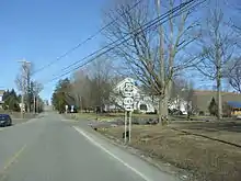 NY 145 continues northwest through the town of Cobleskill as a two-lane residential/rural road, entering the hamlet of Lawyersville. In Lawyersville, NY 145 intersects with CR 29 (Lawyersville Road), turning north onto a residential street through the hamlet. North of Lawyervsille, NY 145 winds northward for several miles, crossing into the town of Carlisle. In Carlisle, NY 145 intersects with the terminus of CR 11 (Little York Road), soon crossing into the town of Seward, where it intersects with Rock District Road. At this intersection, NY 145 bends west onto the right-of-way of Rock District, winding past farms on both sides of the highway.[3]