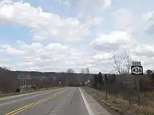 The portion of modern NY 436 between Portageville Road northeast of Portageville and NY 408 in Nunda was originally designated as part of Route 43, an unsigned legislative route, by the New York State Legislature in 1911. The route also included the section of modern NY 408 linking Nunda to Mount Morris.[4] On March 1, 1921, the route was extended southwestward along what is now NY 436 to meet Route 16 (now NY 19A) in Portageville.[5] When the first set of posted routes in New York were assigned in 1924, no part of today's NY 436 was assigned a designation;[6] in fact, by 1926, only two segments were state-maintained: the piece originally designated as part of legislative Route 43 and the section that now overlaps with NY 19A.[7]