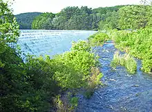 While the portion of US 202 in New York has remained relatively unchanged since the route's assignment in 1934, the overlapping routes have changed over time. The alignments of NY 118 and NY 100 north of New Croton Reservoir were flipped c.1939, placing NY 100 on the Croton Reservoir–Croton Falls highway.[16][17] The resulting overlap between NY 100 and US 202 lasted as late as 1990;[18] however, it was eliminated by 2004 when NY 100 was cut back to end at US 202 in Somers.[19] In the early 1940s, the portion of US 202 between Peekskill and Amawalk became part of NY 35, an east–west route connecting Peekskill to Ridgefield, Connecticut.[20][21]