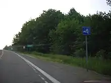 NY 430 begins at the Pennsylvania state line in rural western Chautauqua County as a continuation of PA 430, which begins roughly 13 miles (21 km) to the west in Erie.[5] The route proceeds eastward as a county-maintained, state-numbered highway through the westernmost portion of the town of Mina to the hamlet of Findley Lake, a small community located at the northern tip of the lake of the same name. Here, the New York State Department of Transportation assumes maintenance of the route at a junction with NY 426.[6] NY 430 briefly overlaps with NY 426 through the community and past the northern tip of the waterbody that gives the hamlet its name. The two routes split at the eastern edge of the community.[5]