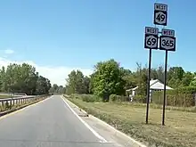 NY 69 was extended a short distance westward to its present western terminus at then-U.S. Route 104 (now NY 104) in Mexico c. 1940.[10][11] It was extended eastward in the early 1940s when NY 5S was truncated to its present western terminus in downtown Utica. The former routing of NY 5S from Rome to Genesee Street in downtown Utica became part of NY 69.[11][12] East of Whitesboro, NY 69 overlapped NY 12C;[13] east of Yorkville, NY 69 also overlapped NY 5A.[14] The overlaps between NY 5A, NY 12C, and NY 69 in Utica were eliminated on January 1, 1970, when NY 69 was truncated to its current eastern terminus in Yorkville and the NY 12C designation was eliminated.[15]