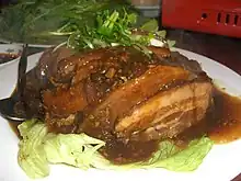 - Siu yuk – Roasted pork cooked in a charcoal oven.[14][15]