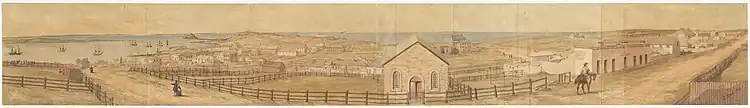 Newcastle remained a penal settlement until 1822, when the settlement was opened up to farming.[17] As a penal colony, the military rule was harsh, especially at Limeburners' Bay, on the inner side of Stockton peninsula. There, convicts were sent to burn oyster shells for making lime.[13] Military rule in Newcastle ended in 1823. Prisoner numbers were reduced to 100 (most of these were employed on the building of the breakwater), and the remaining 900 were sent to Port Macquarie.[14]
