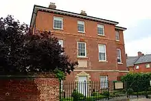 The urban district council was based at the Town Hall at 29 High Street until 1922, when it moved to Godolphin House at 2 The Avenue, and sold the Town Hall to be converted into commercial premises.[23] By 1937 the council had moved its main offices to Stratford House at 29 Old Station Road, but continued to use Godolphin House for some departments.[24][25] Around 1948 the council acquired Severals House at 3 Bury Road, which then served as its offices and meeting place until the council's abolition in 1974.[26] Newmarket Urban District Council was granted a coat of arms on 15 November 1951.[27]