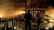 The music video for "Next to You" was directed by Colin Tilley and filmed at the Universal Studios in Los Angeles,[10][11] and upper Manhattan.[12] On May 10, 2011, Bieber's manager confirmed plans for a music video via Twitter.[13] In an interview with MTV News, Tilley spoke briefly about the video, saying "Tomorrow, I'm shooting New Boyz and Chris Brown ... then Justin Bieber and Chris Brown, together ... I can't tell you anything about that yet, but it's going to happen. It's gonna be big. It's gonna be big. I can't say anything else."[14] On May 21, 2011, Brown posted two photos from the shoot via Twitter, showing him and Bieber standing among overturned cars in a path of destruction.[10] However, the unfinished version of the music video leaked onto the internet on June 6,[15] and the final cut was premiered on June 17, 2011.[12]