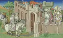 While still in Bukhara, Niccolò and Maffeo met a travelling messenger of the Ilkhanate ruler Hulagu. The messenger was on his way to meet Kublai Khan and decided to invite the brothers on his journey.[4] In 1266, they reached the seat of Kublai Khan, the leader of the Mongol Yuan dynasty, at Dadu (present-day Beijing). In the book, The Travels of Marco Polo, Kublai Khan officially received the Polos and sent them back with a Mongol named Koeketei as an ambassador to the pope. They brought with them a letter from the Khan requesting 100 educated people to come and teach Christianity and Western customs to his people and oil from the lamp of the Holy Sepulcher. The letter also contained a paiza, a golden tablet a foot long and 3 inches (7.6 cm) wide, allowing the holder to acquire and obtain lodging, horses and food throughout Kublai Khan's dominion. Koeketei left in the middle of the journey, leaving the Polos to travel alone to Ayas in the Armenian Kingdom of Cilicia. From that port city, they sailed to Acre, capital of the Kingdom of Jerusalem.