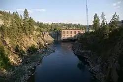 Nine Mile Falls Dam is a dam on the Spokane River, in the unincorporated community of Nine Mile Falls, Washington. It was built on the site of the falls in 1908, creating Nine Mile Reservoir. The dam was designed by the New York engineering firm of Sanderson & Porter, and originally constructed to satisfy the power needs of the Spokane and Inland Empire Railroad interurban trolley lines.[2]