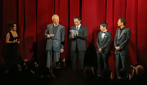 2006 proved to be a productive year for Ninomiya as he became the first artist from Johnny's & Associates to debut in Hollywood. He played a reluctant soldier called Saigo in Clint Eastwood's Academy Award-winner Letters from Iwo Jima with Academy Award-nominated actor Ken Watanabe. His performance was praised by many film critics, some of which include RogerEbert.com editor Jim Emerson ("thoroughly winning"),[39] Claudia Puig of USA Today ("also superb"),[40] James Berardinelli ("another performer worth singling out")[41] and Kirk Honeycutt of The Hollywood Reporter ("just terrific").[42] On January 7, 2007, New York Times film critic A. O. Scott listed Ninomiya as an ideal Oscar candidate for Best Supporting Actor.[43] On October 24, 2006, a couple months after returning from filming Letters from Iwo Jima in the United States, he debuted as a voice actor, lending his voice to main character Black in the Michael Arias animated film Tekkon Kinkreet.[44]