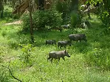 Other mammals include roan antelope, Guinea baboon, green monkey, patas monkey, warthog.
