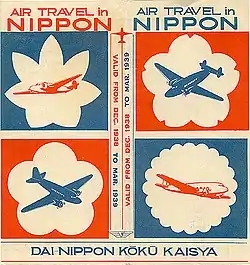 After the start of the Pacific War in 1942, the airline became completely government-owned and operated as two separate units under the control of the Imperial Japanese Army and Imperial Japanese Navy respectively.[3] By 1943, the airline flew a circular military convoy route from Taiwan through the Philippines, Indonesia, Singapore, Thailand and southern China.[4] Operations continued until the surrender of Japan in August 1945, despite heavy losses. Haneda Airport was seized by Allied forces in September, and the airline was formally disbanded in October.[3] During the Allied occupation, surviving aircraft and equipment were confiscated, and domestic civil aviation in Japan was banned until the formation of Japan Air Lines in 1951. Civil aviation to and from Japan was restored in 1947 with flights operated by Northwest Orient Airlines and Pan American Airways from Haneda.