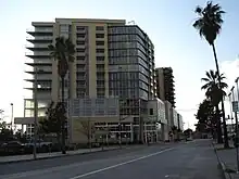 The theater district includes two new large venues that expand upon existing theaters, the redesigned NoHo Arts Center (formerly the American Renegade Theatre) and the redesigned Historical El Portal. They add to the existing 31 theaters located in and around the NoHo Arts District. NoHo Commons, developed by J.H. Snyder Company, is located near the NoHo Arts District's commercial core and subway station. The $100-million, 292-unit loft apartment project by Snyder was the first segment to be completed of NoHo Commons, part of a "transit village" taking form at the terminus of the Metro B Line subway and the G Line busway. The NoHo Commons construction and development consisted of three phases, completing with the construction of a Laemmle Theatre. Phase III also consisted of the construction of an eight-story office on the corner of Lankershim and Weddington in 2009. The building's primary tenant is currently the Art Institute of California-Hollywood. NoHo 14, a 180-unit, fourteen-story apartment building, was built in 2004 as one of the first large-scale developments in the neighborhood.