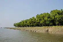 Nijhum Dwip (Char Osmani, Baluar Char, Golden Island )[16] is a small island under Hatiya upazila of Noakhali. A cluster of islands (mainly, Ballar Char, Kamlar Char, Char Osman and Char Muri) emerged in the early 1950s as alluvium in the shallow estuary of the Bay of Bengal on the south of Noakhali. These new sandbanks first drew the attention of a group of fishermen, who named it Baular Char. In 1974 the Forest Department began an aforestation program for twenty years on the north side of the island. Covering an area of 9,000 acres (3,600 ha), it has now developed into a deep forest with a variety of plant species. Among the trees Keora is often seen. Besides this Gewa, Kankra, Bain, Babul, Karamja, Pashur and many other species are in evidence. It was renamed 'Nijhum Dweep' by former Minister Amirul Islam Kalam in 1979 after observing its isolation and mild nature.