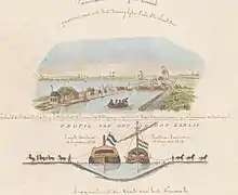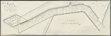 The northern section stretched from the northern entrance of the Zijpe polder at 't Zand to Nieuwediep. It was directed by Engineer Glimmerveen and also included the new double lock at Nieuwediep.[12] In this section preparatory works had already been executed in 1817 and 1818, including the construction of the dyke along the Koegras,[11] and also the construction of a fan flood gate (Zijper Keersluis) at 't Zand,[15] which was made into a regular lock during the later construction of the canal.