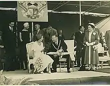 Upon his announcement of retirement from mayoral duties, all members of the council spoke and paid tribute to Mr and Mrs Moss. One came from Councillor Peterson, referring in particular to the dignified manner in which the Mayor and Mayoress had carried out their duties on the occasion of the visit to Stratford of Her Majesty, Queen Elizabeth 11 and His Royal Highness, The Duke Of Edinburgh.[6]