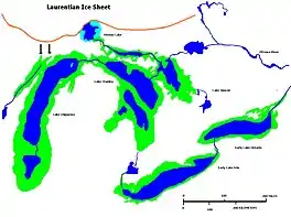 The North Bay Outlet was an outlet of a proglacial lake that preceded present day Lake Huron, where it discharged its waters near present-day North Bay, rather than a more southerly route, as the Laurentian glaciation receded.[1][2] Water drained down this route from approximately 10000 to 4500 bpe.