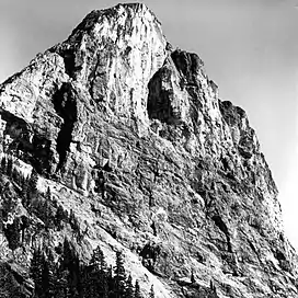 The butte is made up of volcanic breccia of the Hannegan Pass Volcanics.[5] The North Cascades features some of the most rugged topography in the Cascade Range with craggy peaks, ridges, and deep glacial valleys. Geological events occurring many years ago created the diverse topography and drastic elevation changes over the Cascade Range leading to the various climate differences.