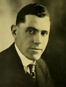 The team won a second South Atlantic championship in 1910 under coach Edward Green, finishing with a record of 4–0–2.[16] A win over Virginia Tech in Norfolk that season was dubbed the "biggest game ever played in the South".[17] Coach Green led team to a third conference championship in 1913, with a record of 6–1.[18][14] The 1918 season, which was the school's first season with the name North Carolina State University,[19] was cut short due to the United States' entrance into World War I and a severe flu outbreak on campus. The team's roster was depleted, its schedule reduced to four games, and practice was suspended for five weeks in October and November. A week after practice resumed, State College, as the school was then called, led by coach Tal Stafford, was defeated 128–0 by Georgia Tech in Atlanta. Tackle John Ripple was named the program's first All-American. The following season, on October 23, the Farmers resumed play with North Carolina after a 14-year hiatus. The Tar Heels won the game 13–12 in Raleigh. It wasn't until 1920 that A&M defeated the rival Tar Heels for the first time.[14] In 1921 State College began wearing red sweaters and were referred to by the local media as the Wolfpack.[20] The program, led by coach Harry Hartsell at the time, joined the Southern Conference that year[20] and would win the conference title six seasons later under coach Gus Tebell, finishing the year with a 9–1 record.[21] Running back Jack McDowall was the team's star player that year.[22] The 1930 season saw the installation of field lighting at Riddick Stadium, as the Wolfpack defeated High Point University, 37–0, in the team's first ever night game.[14] Williams Newton took over as State's head coach in 1937, and under his tutelage the team compiled a record of 24–39–6.[23][24] Under Newton, State employed a ground-oriented, hard nose attack that put pressure on the opposing interior linemen.[25] Recruitment became difficult during at least part of his tenure as head coach due to the fact that World War II necessitated that eligible males over 18 be inducted into the U.S. military.[26] Newton left NC State after seven seasons to accept the head football coach position at South Carolina.[27]