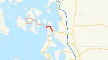 SR 20 Spur was established in 1937 as the Anacortes branch of Primary State Highway 1 (PSH 1 AN), which ran from the Anacortes ferry terminal to PSH 1 in Mount Vernon, using the current highway along with State Highway 20 and SR 536. The route intersected Secondary State Highway 1D (SSH 1D, now SR 20) in Anacortes, SSH 1C (former SR 237) in Fredonia and a SSH 1C branch (became PSH 16, now SR 20).[34][35] PSH 1 AN was later renumbered during the 1964 highway renumbering to SR 536, SSH 1D became SR 525 and PSH 16 became SR 20.[23][25] When SR 20 was extended west to Discovery Bay from Fredonia in 1974, SR 536 was shortened and SR 20 Spur was created.[24][36] The roadway ended at the Anacortes ferry terminal until 1994, when the route was routed onto the San Juan Islands ferry operated by Washington State Ferries.[37][38]