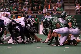 The North Dakota football team lines up on offense before the snap during a game against Indiana State in 2023